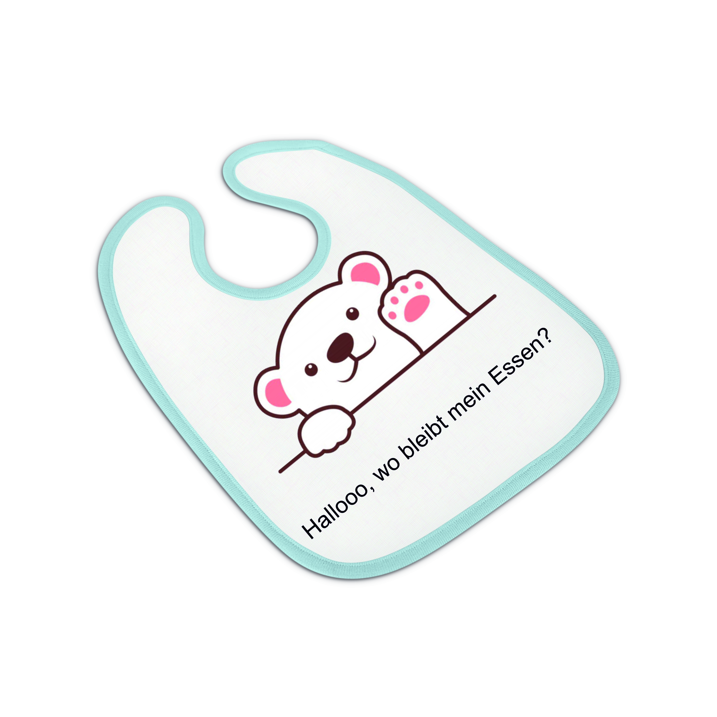 Willkommen in der zauberhaften Welt der Mahlzeiten, wo selbst die kleinsten Feinschmecker mit unserem entzückenden Baby-Lätzchen in einen kulinarischen Genuss eintauchen können! Mit dem fröhlichen Aufdruck "Wo bleibt mein Essen?" und einem freundlich winkenden Bären wird jede Mahlzeit zu einem spaßigen Abenteuer voller Lächeln und Freude.