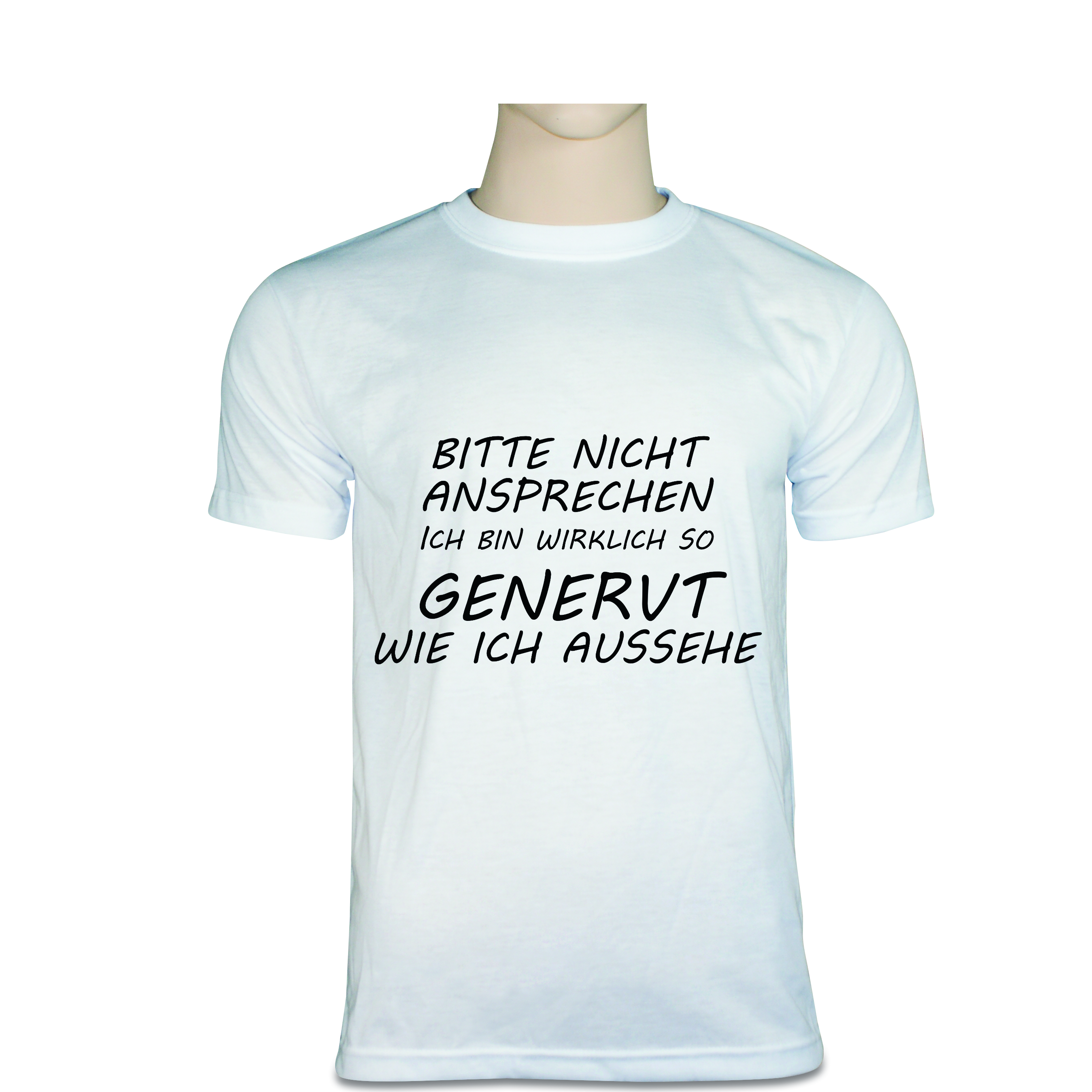 Dieses T-Shirt ist perfekt für die Tage, an denen man einfach keine Lust auf Smalltalk hat und lieber in Ruhe gelassen werden möchte. Mit dem humorvollen Aufdruck "Bitte nicht ansprechen, ich bin wirklich so genervt wie ich aussehe" sorgt dieses Shirt garantiert für einige Lacher. Hergestellt aus superweicher Baumwolle und in verschiedenen Größen erhältlich, ist dieses Shirt nicht nur ein Statement, sondern auch noch bequem zu tragen. Zeigen Sie der Welt mit einem Augenzwinkern, dass Sie heute lieber Ihre Ruhe haben möchten.