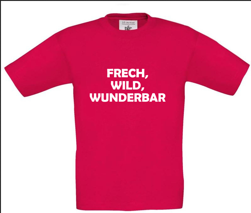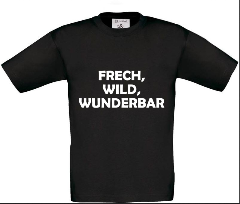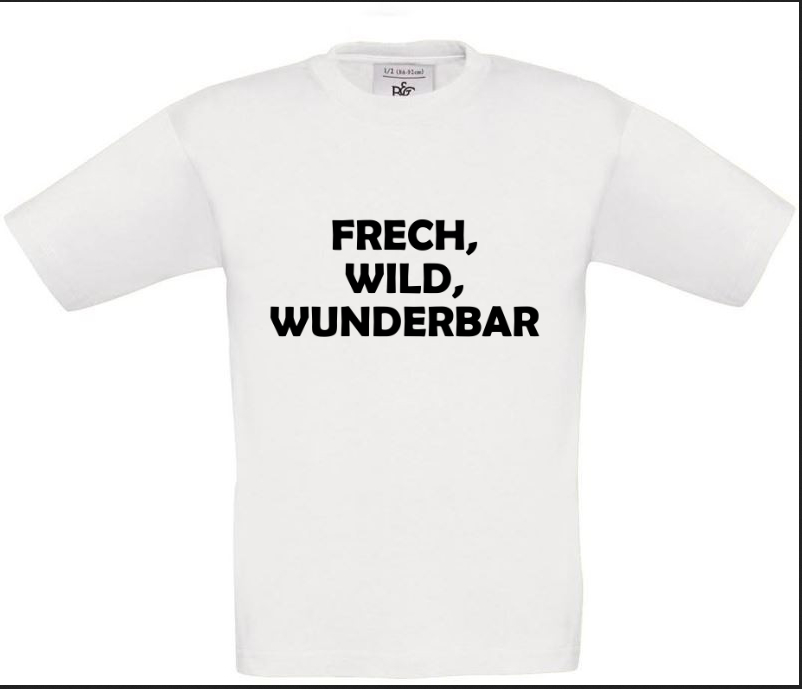 Mit dem coolen Aufdruck "frech, wild, wunderbar" wird dieses Shirt zum Statement-Piece in jeder Kinder-Garderobe. Egal ob beim Toben im Garten, beim Versteckspiel im Park oder beim Schulausflug ins Museum - dieses Shirt zeigt allen, dass dein Kind ein echter Wirbelwind ist, der das Leben in vollen Zügen genießt. Also schnapp dir dieses Shirt und lass deinen kleinen Frechdachs die Welt erobern - denn wer braucht schon Langeweile, wenn man so viel Spaß haben kann?
