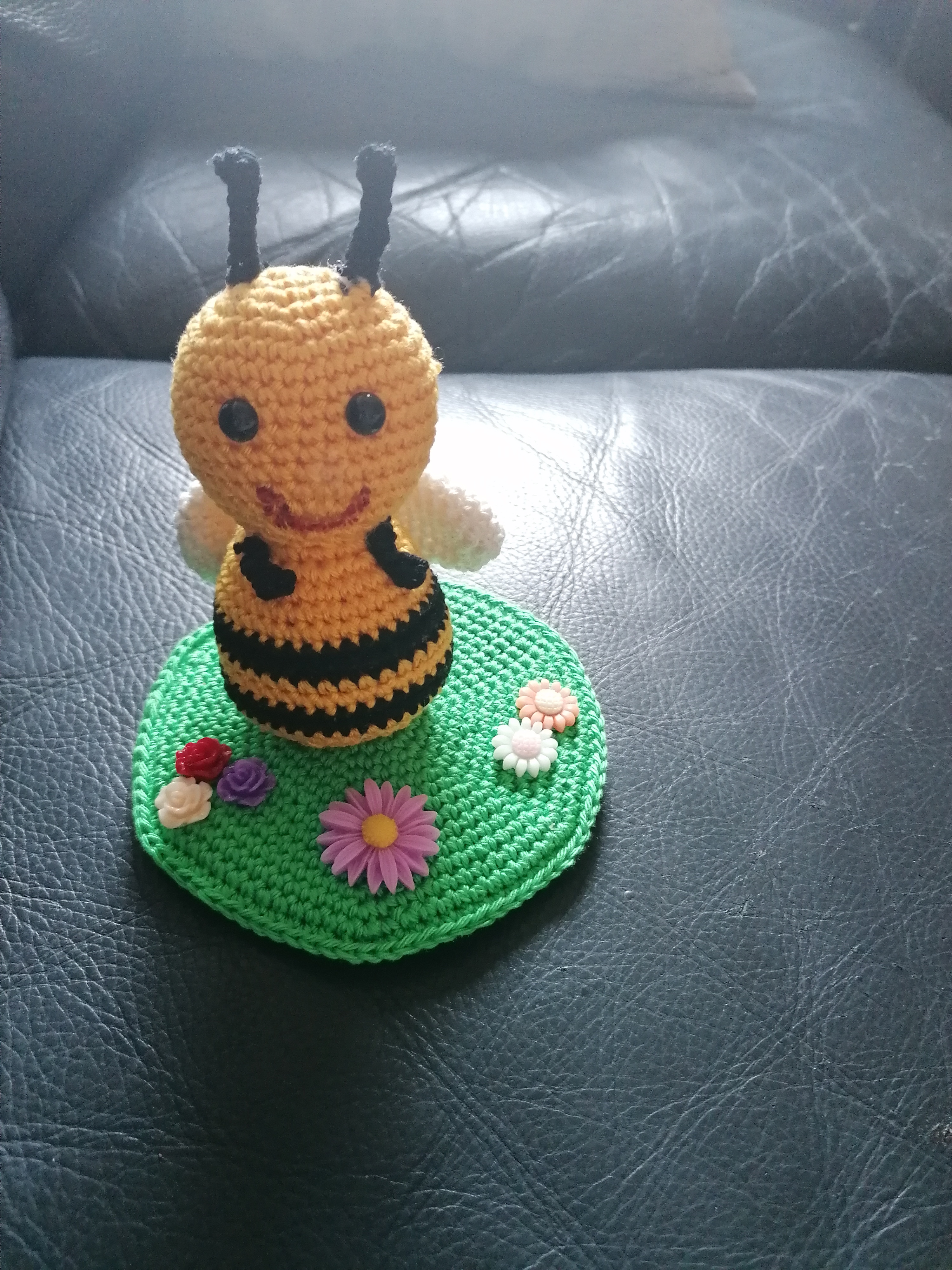 Besonderheit: Feste Platzierung auf einer gehäkelten Wiese mit dekorativen Blümchen