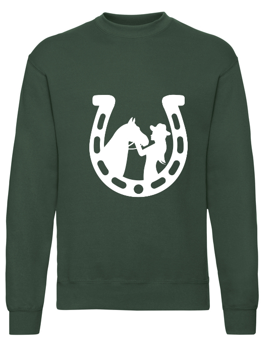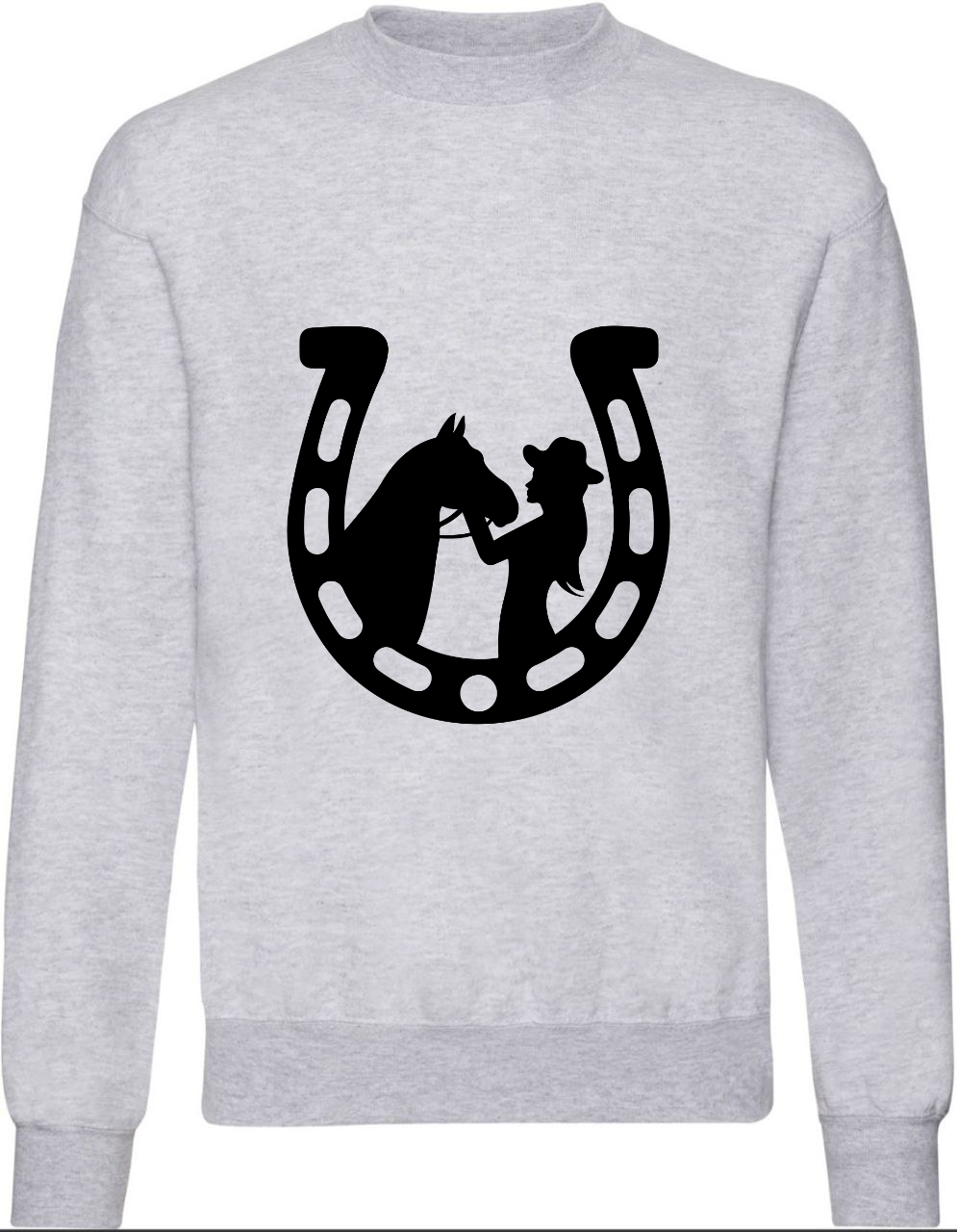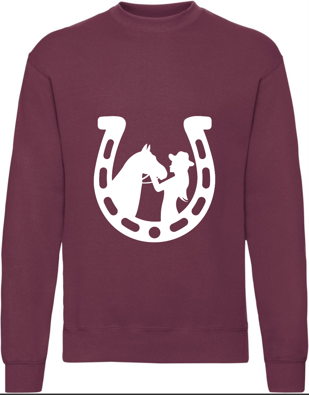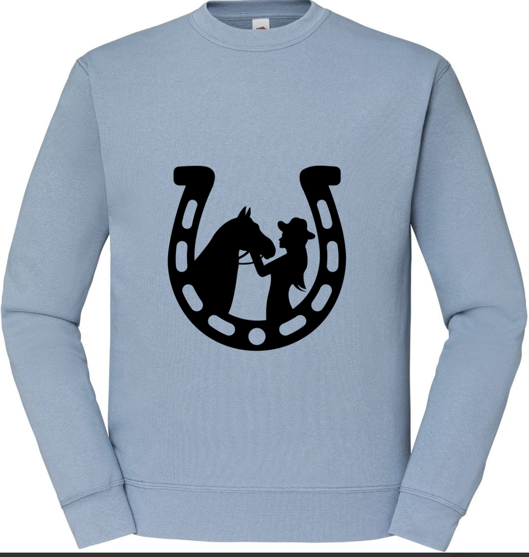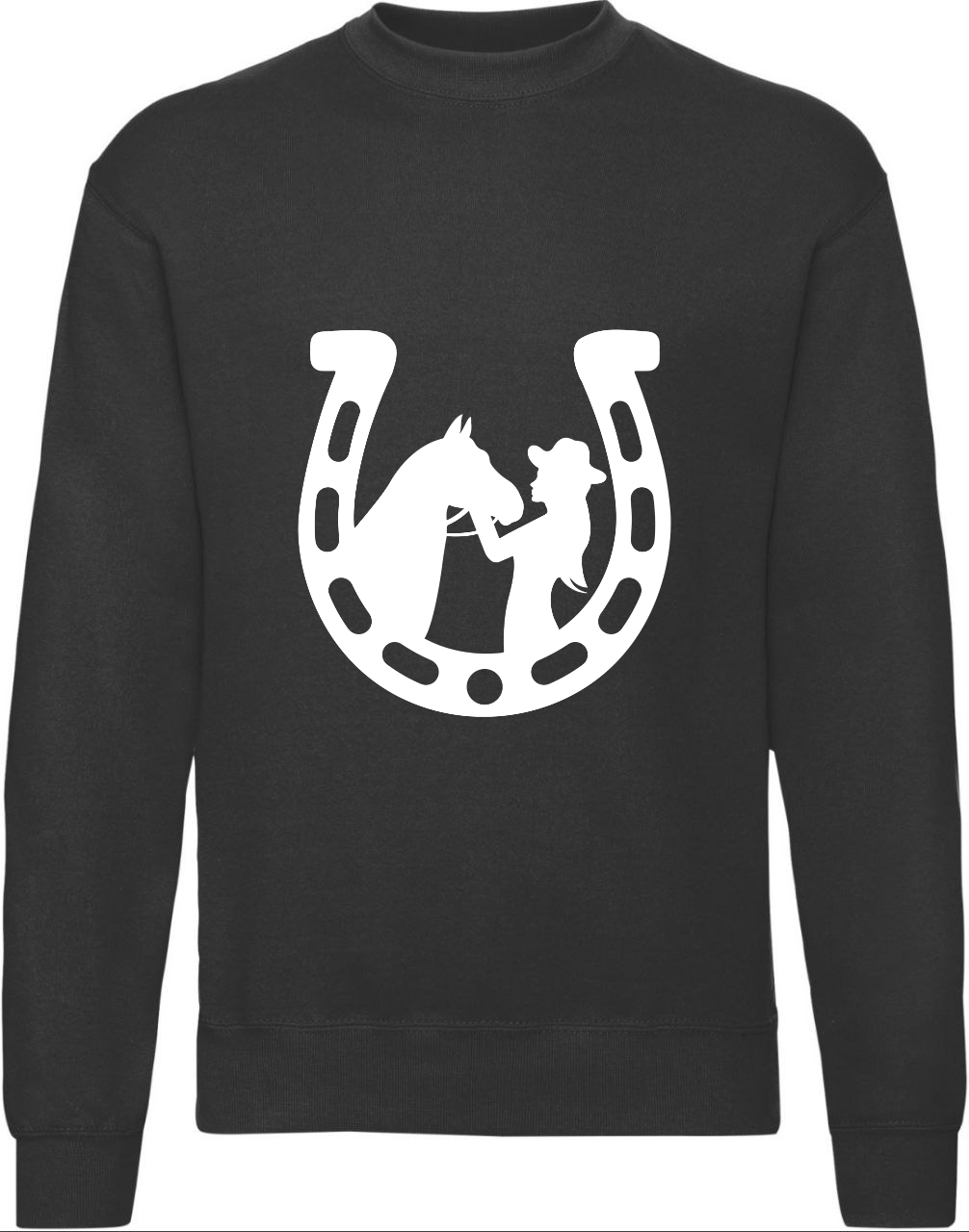 Dieser Sweater ist der Glücksbringer schlechthin für alle Pferdefans da draußen! Mit dem Bild eines Pferdes und einer Frau, die sich in einem riesigen Hufeisen befinden, strahlt dieser Sweater nicht nur Stil aus, sondern auch jede Menge Glück. Trage ihn bei deinem nächsten Ausritt und spüre die positive Energie, die dich umgibt. Vielleicht bringt dir das Hufeisen ja sogar ein bisschen Extra-Glück - wer weiß, vielleicht findest du auf deinem nächsten Spaziergang sogar einen Geldbeutel voller Münzen! Egal ob du an Glücksbringer glaubst oder einfach nur ein cooles Outfit suchst, dieser Sweater ist genau das Richtige für dich. Also schnapp ihn dir und lass dich von der magischen Verbindung zwischen Mensch, Pferd und Hufeisen verzaubern!