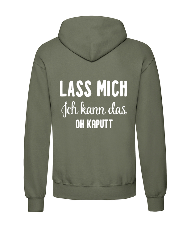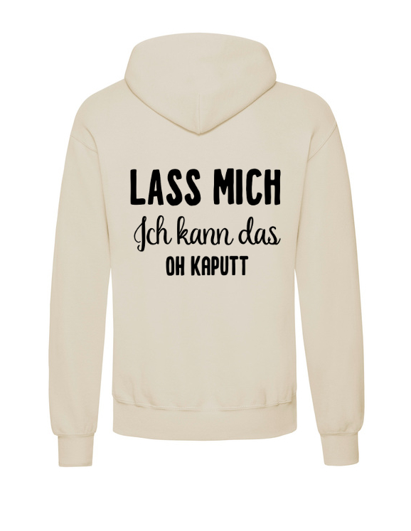 Dieser Hoodie ist für alle, die sich gerne als selbstbewusste Überflieger präsentieren, aber manchmal doch ein kleines bisschen zu viel Selbstvertrauen haben! Mit dem Spruch "Lass mich, ich kann das. Oh Kaputt!" zeigst du der Welt, dass du dich nicht von kleinen Missgeschicken aus der Ruhe bringen lässt und auch über deine eigenen Patzer lachen kannst. Trage diesen Hoodie bei deinem nächsten Abenteuer oder einfach im Alltag - er wird dir dabei helfen, deine Entschlossenheit und deinen Humor zu zeigen und dich von deiner charmant-chaotischen Seite zu präsentieren. Zeige allen, dass du vielleicht manchmal etwas zu optimistisch bist, aber trotzdem immer mit einem Augenzwinkern durchs Leben gehst! Also schnapp dir diesen Hoodie und lass dich von seinem witzigen Spruch umhüllen - denn wer Fehler macht und trotzdem weitermacht, hat schon gewonnen!