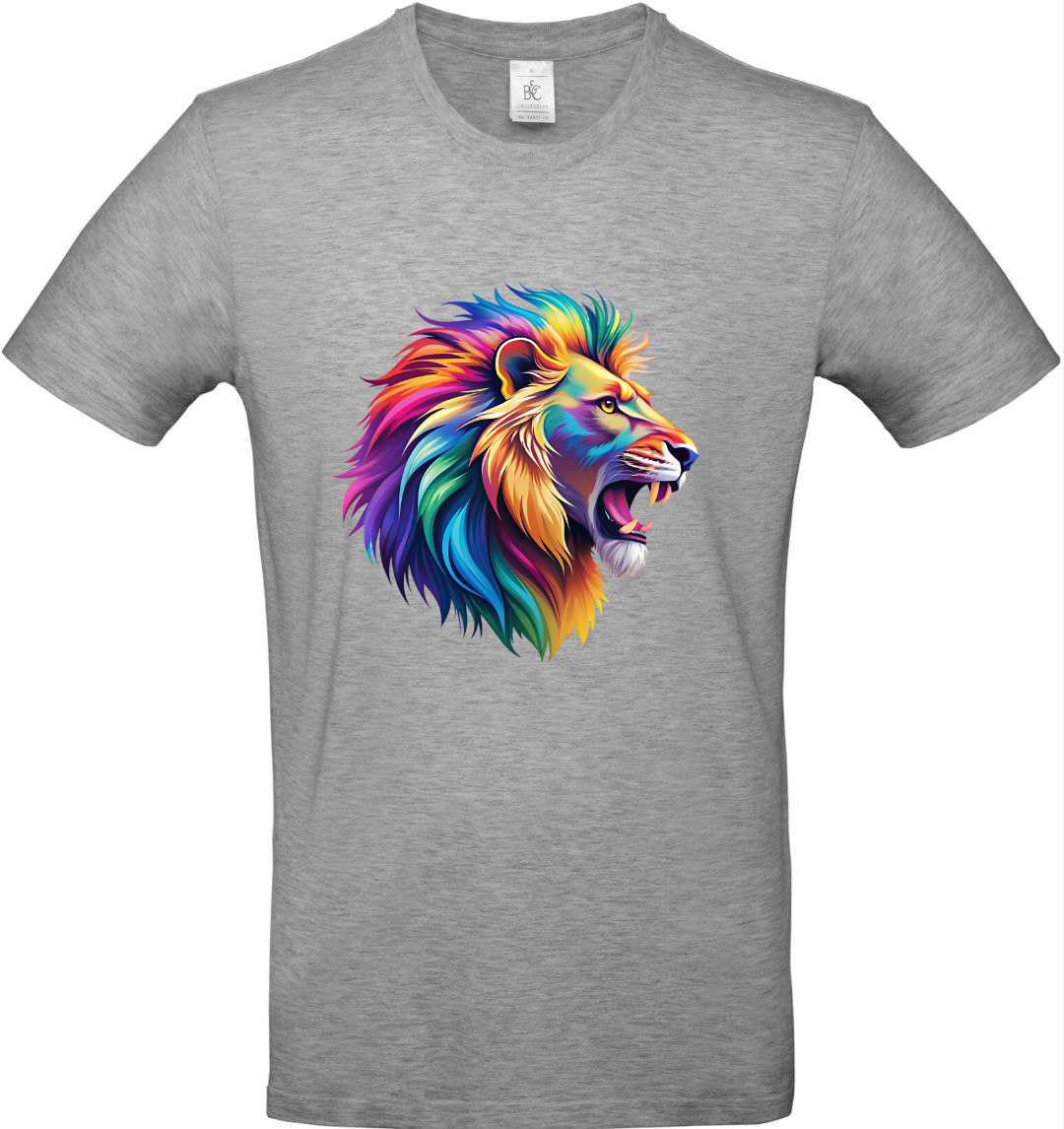 Dieses T-Shirt ist ein wahres Statement-Piece! Es zeigt einen majestätischen, bunten Löwen auf der Vorderseite, der durch seine lebendigen Farben und markanten Details sofort ins Auge sticht. Der Löwe symbolisiert Stärke, Mut und Eleganz, während das moderne Design deinem Look eine besondere Note verleiht. Das T-Shirt besteht aus hochwertigem, weichem Baumwollmaterial, das für angenehmen Tragekomfort sorgt und gleichzeitig eine lange Haltbarkeit garantiert. Perfekt kombinierbar mit Jeans oder Shorts, bringt dieses T-Shirt sowohl im Alltag als auch zu besonderen Anlässen Farbe und Persönlichkeit in deinen Kleiderschrank. Ein echtes Must-have für alle, die sich durch ihre Kleidung ausdrücken möchten!