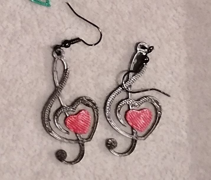 Diese bezaubernden Ohrringe vereinen die Liebe zur Musik mit einem romantischen Herzmotiv.