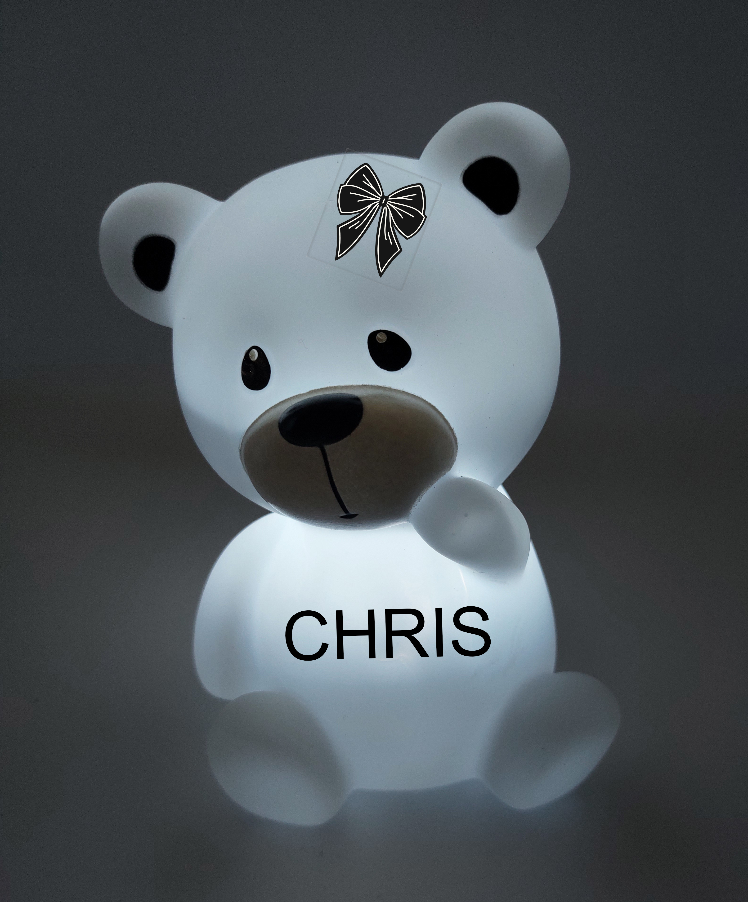Dieses personalisierte Teddybär-Nachtlicht ist nicht nur ein schönes Geschenk für Kindergeburtstage, Babypartys oder als besonderes Geschenk für werdende Eltern, sondern auch eine herzerwärmende Erinnerung an liebevolle Bindungen und kostbare Momente.Also, lass diesen zauberhaften Teddybären in dein Leben treten und deine Nächte mit seinem warmen Glanz erhellen. Mit seinem personalisierten Touch wird er zu einem unvergesslichen Begleiter auf deiner Reise durch die Nacht, bereit, deine Träume mit Liebe und Licht zu erfüllen.