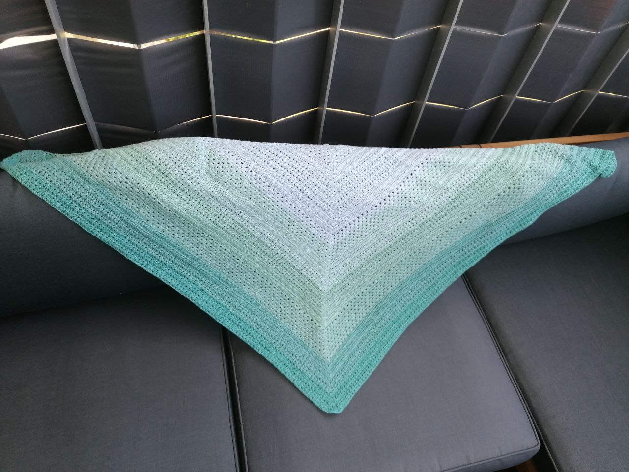 Dieses liebevoll handgehäkelte Dreieckstuch vereint zeitloses Design mit angenehmem Tragekomfort. Der zarte Farbverlauf macht es zu einem eleganten Accessoire für jede Jahreszeit – ob als Halstuch, Schultertuch oder stilvolle Ergänzung zu deinem Outfit.