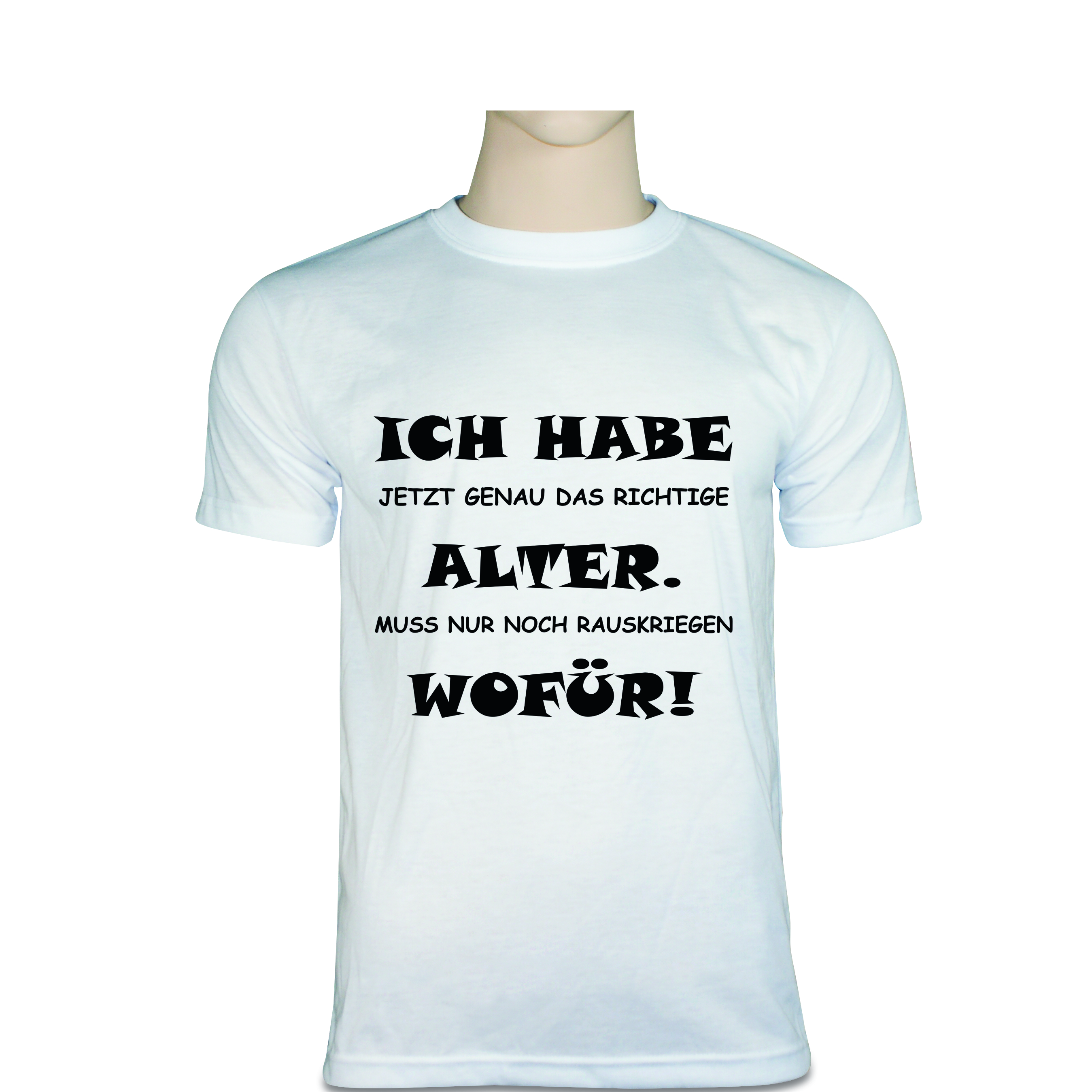 "Dieses T-Shirt ist wie eine geheime Schatzkarte für dein Leben - mit dem Aufdruck 'Ich habe jetzt genau das richtige Alter. Muss nur noch rauskriegen wofür' zeigst du der Welt, dass du mitten im Abenteuer des Erwachsenwerdens steckst. Denn wer sagt, dass man mit 30 schon alles im Griff haben muss? Mit diesem Shirt kannst du dich ganz entspannt zurücklehnen und dich fragen: Wofür war nochmal dieses ganze Erwachsenen-Ding gut? Vielleicht für die perfekte Kombination aus Netflix und Pizza? Oder für die Kunst des Powernappings am Wochenende? Egal was es ist, dieses Shirt erinnert dich daran, dass das Leben ein großes Rätsel ist - aber hey, solange du es mit Humor nimmst, bist du auf dem richtigen Weg. Also trage es mit Stolz und einem Augenzwinkern und lass alle wissen: Ich bin jung, wild und verwirrt - aber hey, das ist doch auch irgendwie cool, oder?"