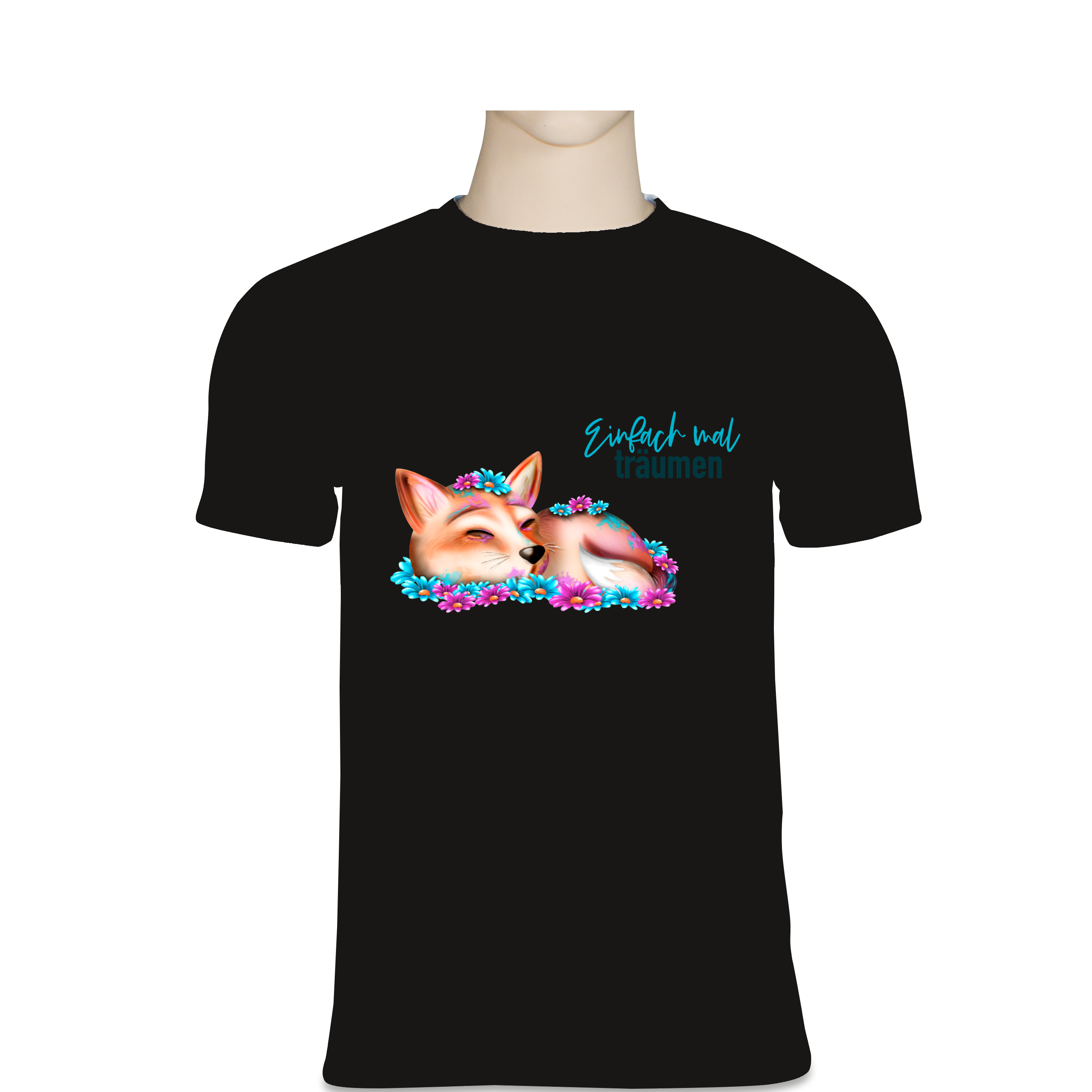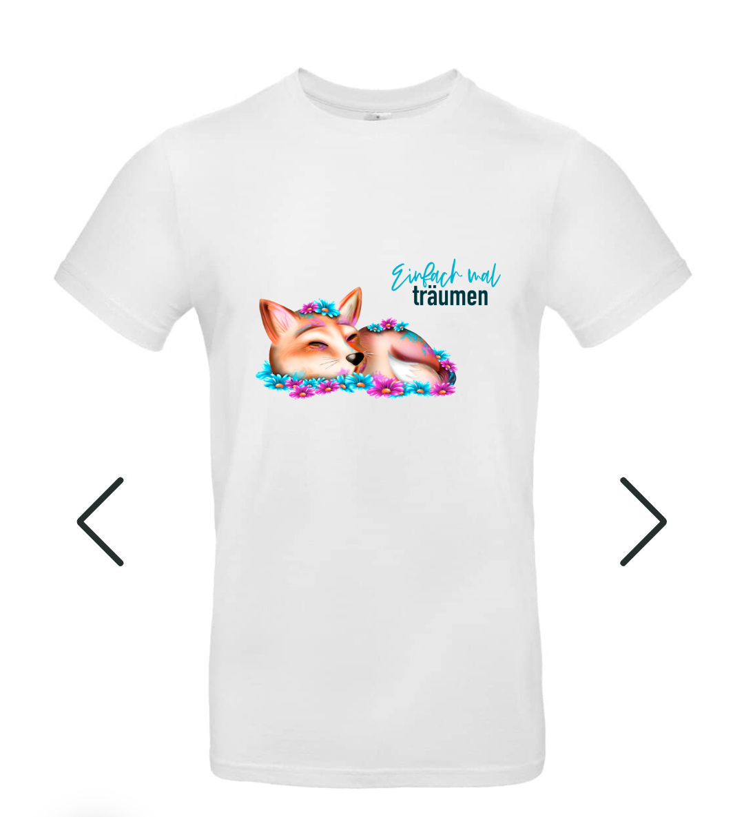 Dieses wunderschöne T-Shirt lädt zum Träumen ein! Das zauberhafte Motiv mit einem friedlich schlummernden Fuchs, umgeben von bunten Blumen, versprüht Ruhe und Gelassenheit. Der inspirierende Spruch
