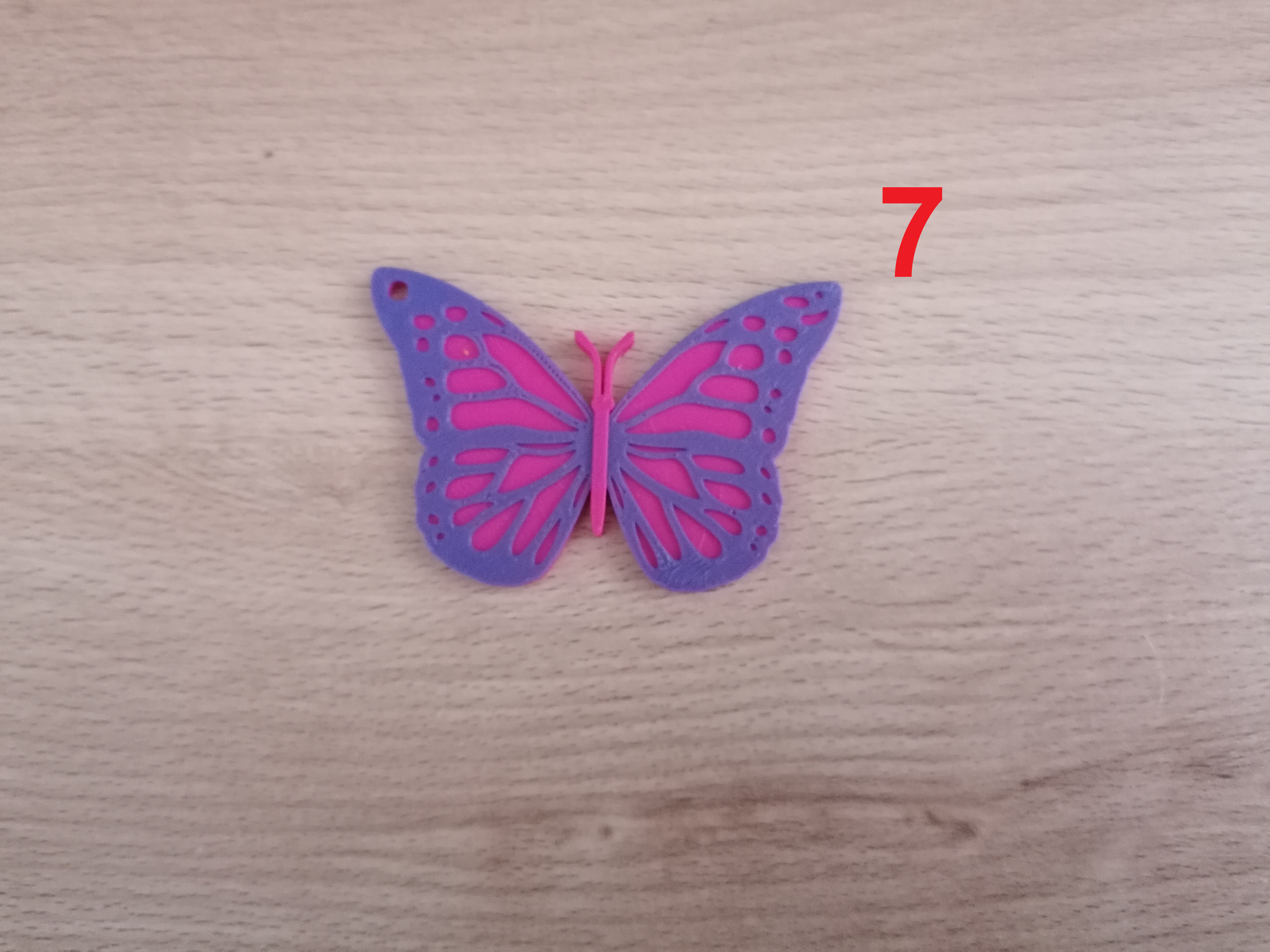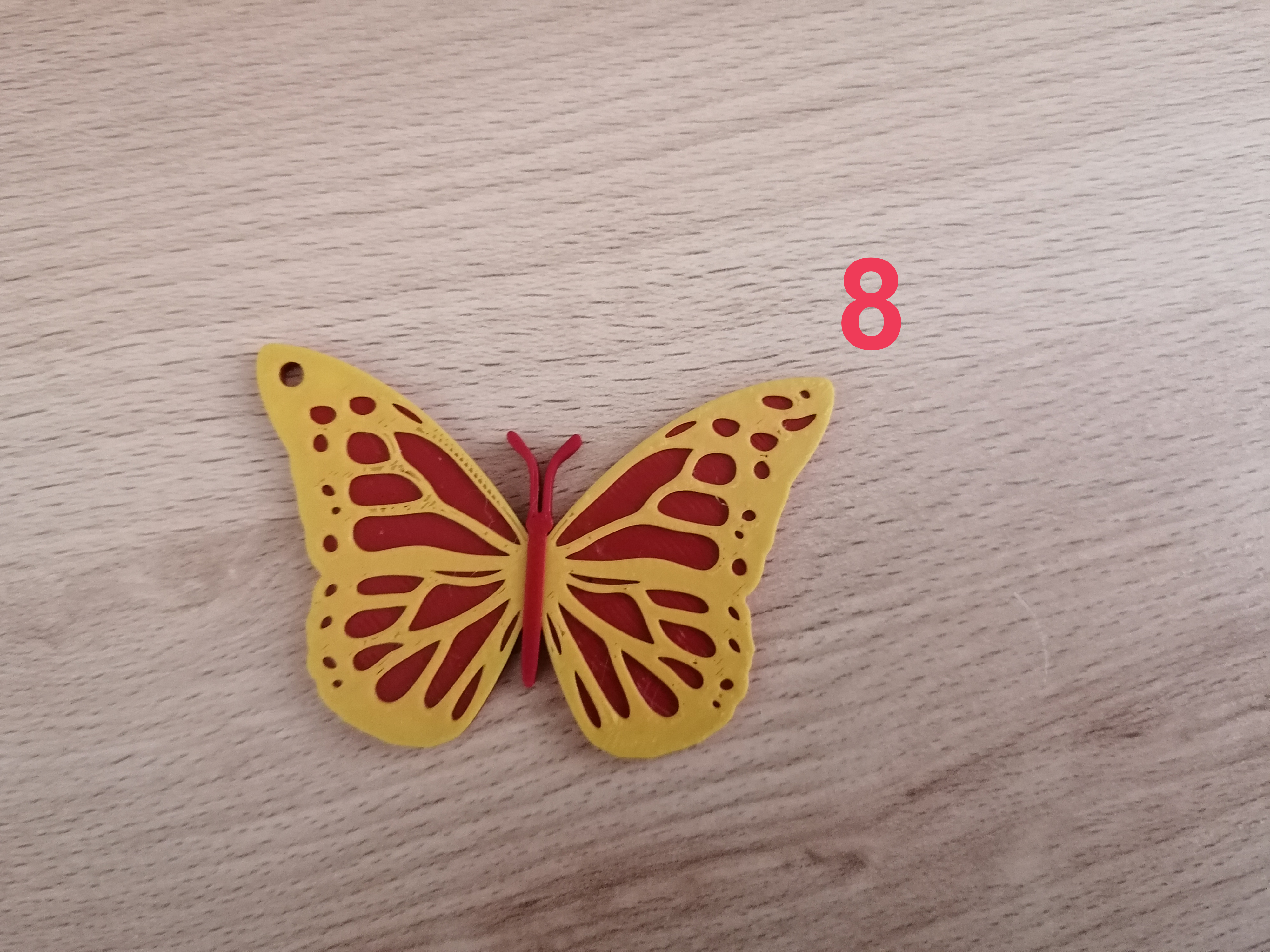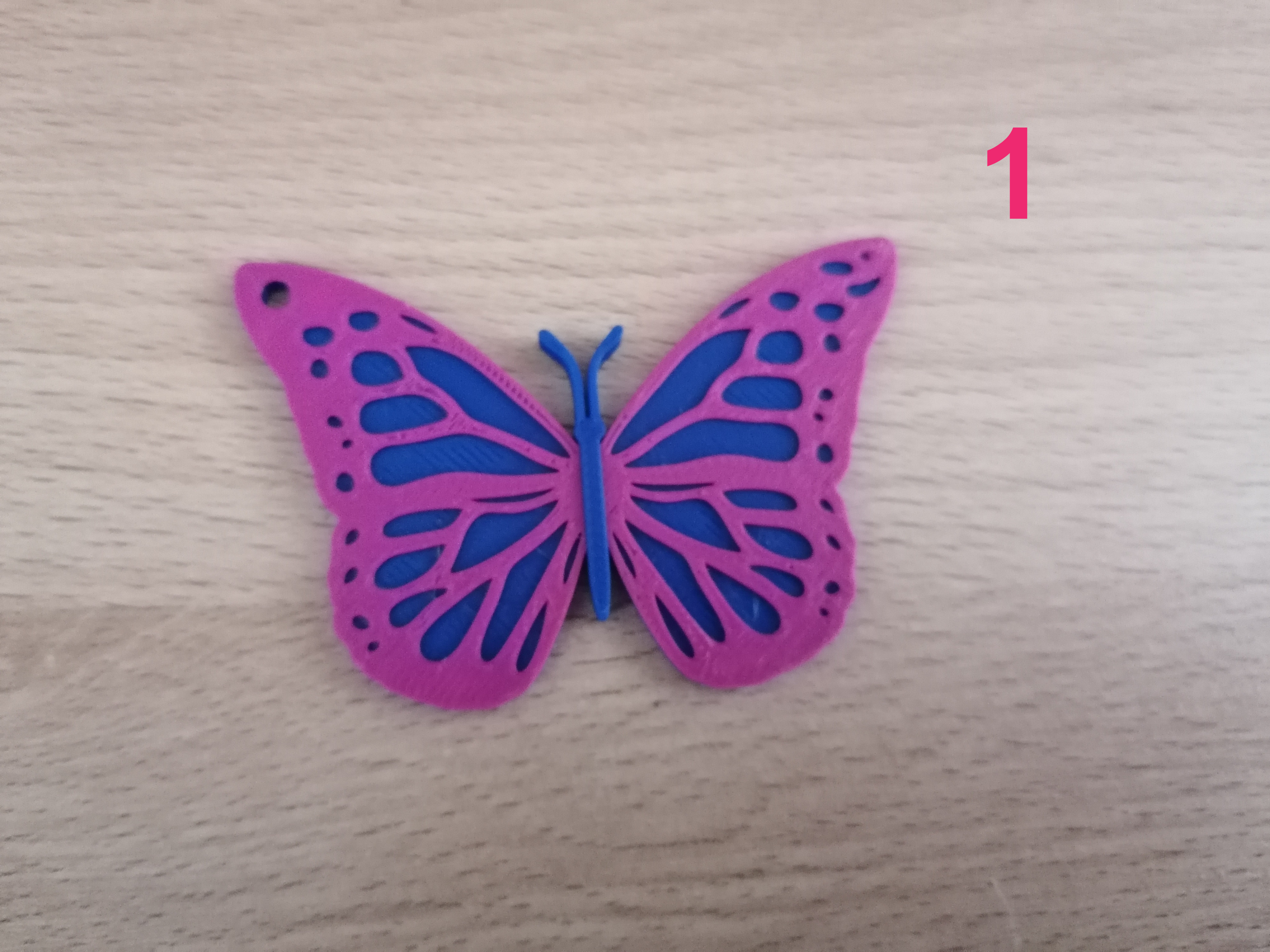 Verleihen Sie Ihrem Schlüsselbund, Ihrer Tasche oder Ihrem Rucksack einen Hauch von Leichtigkeit und Farbe mit diesem einzigartigen Schlüsselanhänger in Form eines zarten Schmetterlings. Das Modell wird im 3D-Druckverfahren mit zwei kontrastierenden Farben gefertigt – so entsteht ein lebendiges, detailreiches Design, das sofort ins Auge fällt.