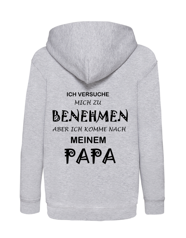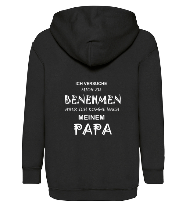Dieser Hoodie ist wie ein kleiner Hilferuf an alle, die es sehen: "Ich versuche mich zu benehmen, aber ich komme nach meinem Papa." Mit diesem Hoodie können Sie Ihrem Kind eine Ausrede geben, wenn es mal wieder in die Fußstapfen seines Vaters tritt - sei es mit seinem unverwechselbaren Humor, seiner Vorliebe für schlechte Witze oder seinem Talent, das Wohnzimmer in ein Schlachtfeld zu verwandeln. Aber hey, zumindest wissen Sie jetzt, woher der Apfel den Stamm hat! Also halten Sie sich fest und genießen Sie die Fahrt - denn mit diesem Hoodie wird Ihr Kind garantiert für einige Lacher sorgen.