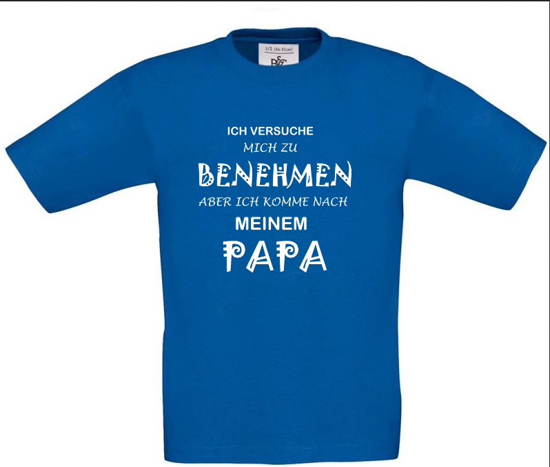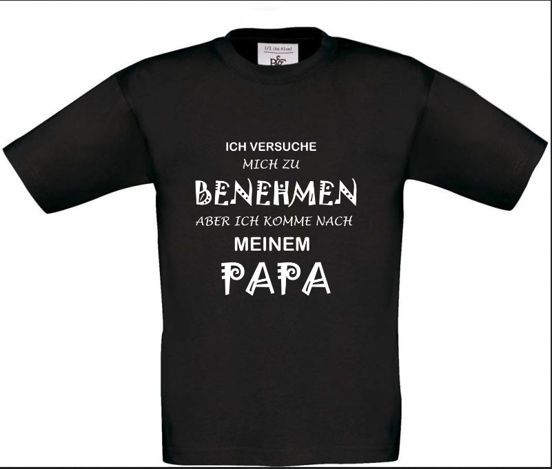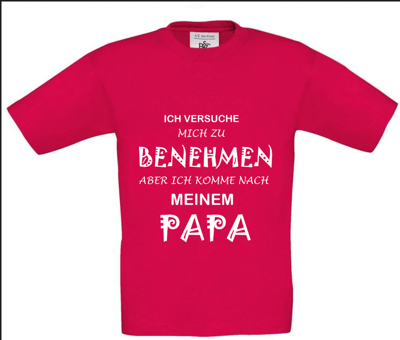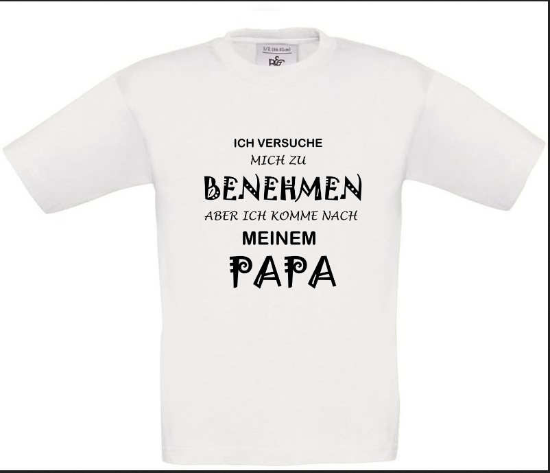 Dieses T-Shirt ist wie ein kleiner Hilferuf an alle, die es sehen: "Ich versuche mich zu benehmen, aber ich komme nach meinem Papa." Mit diesem Shirt können Sie Ihrem Kind eine Ausrede geben, wenn es mal wieder in die Fußstapfen seines Vaters tritt - sei es mit seinem unverwechselbaren Humor, seiner Vorliebe für schlechte Witze oder seinem Talent, das Wohnzimmer in ein Schlachtfeld zu verwandeln. Aber hey, zumindest wissen Sie jetzt, woher der Apfel den Stamm hat! Also halten Sie sich fest und genießen Sie die Fahrt - denn mit diesem Shirt wird Ihr Kind garantiert für einige Lacher sorgen.